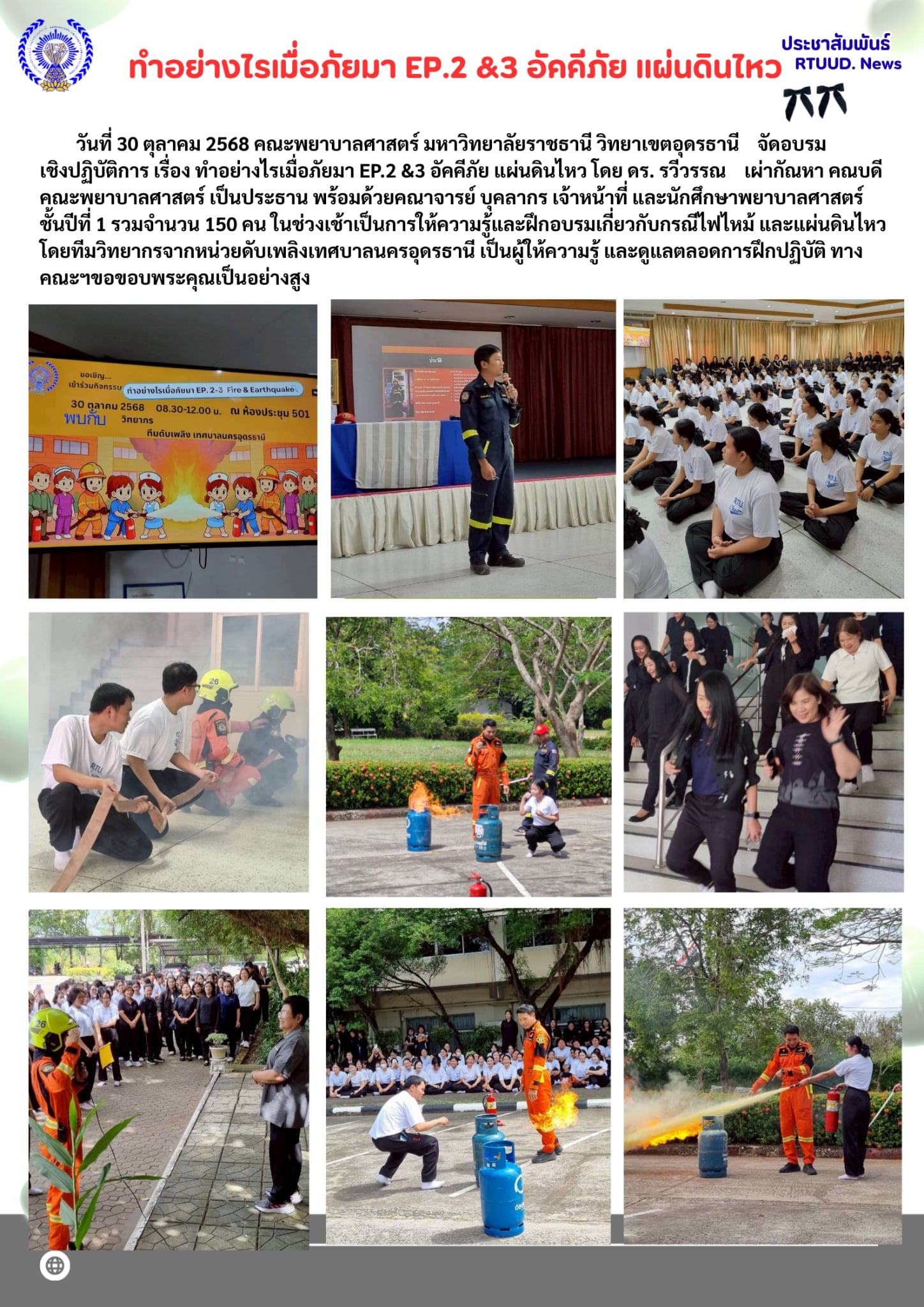การอบรมเชิงปฏิบัติการ ทำอย่างไรเมื่อภัยมา EP.2&3 อัคคีภัย แผ่นดินไหว